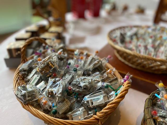 また、ふるさと納税「お礼の品」の資料を配布中です。フジゲンがオルゴールや多角製品を供給している長野県安曇野市の「ふるさと納税 お礼の品」リスト、長野県山形村の「ふるさと納税 お礼の品」チラシをオルゴールフェア会場で配布中です。